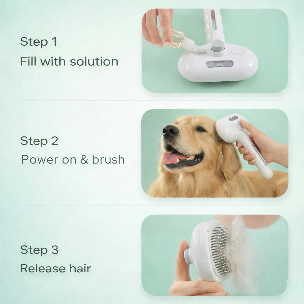 Den medfølgende opløsning er en skånsom, kæledyrsvenlig formel, der er udviklet til at opfriske pelsen under børstningen. Du kan også bruge vand, hvis du foretrækker det.