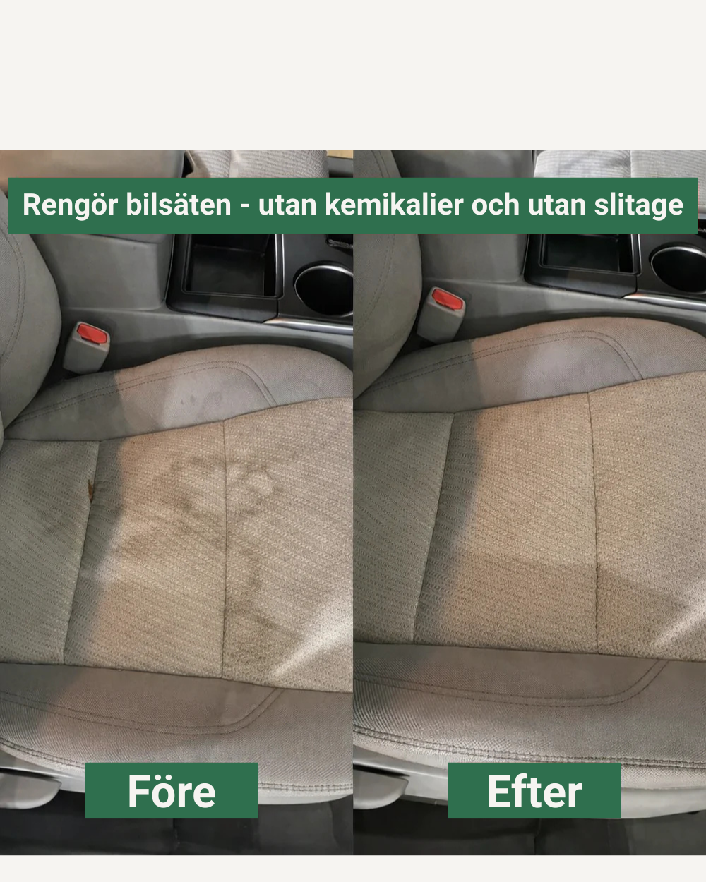 ”Borttagna fläckar och lukter – utan att blöta ner sätena.”