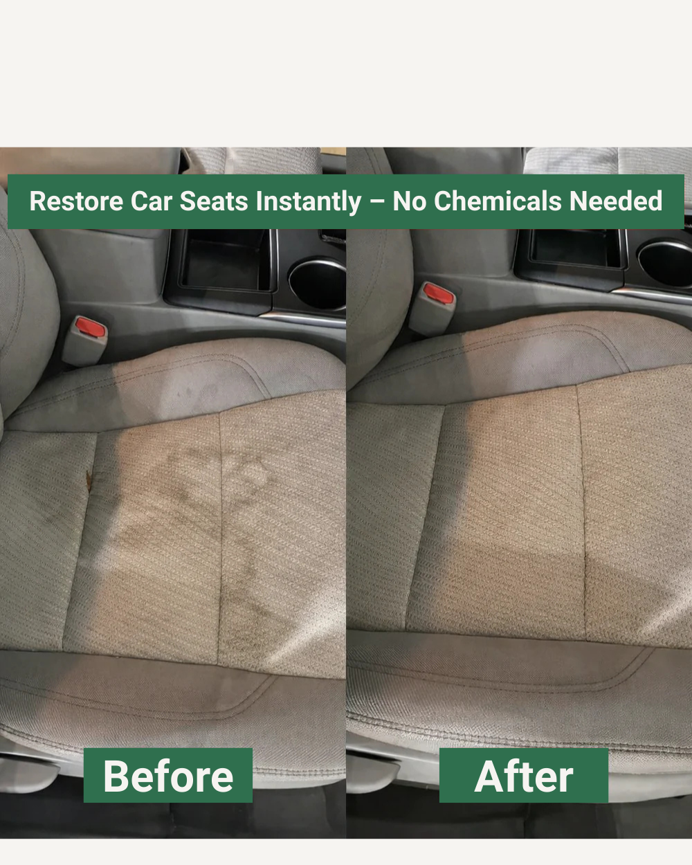 ”Borttagna fläckar och lukter – utan att blöta ner sätena.”